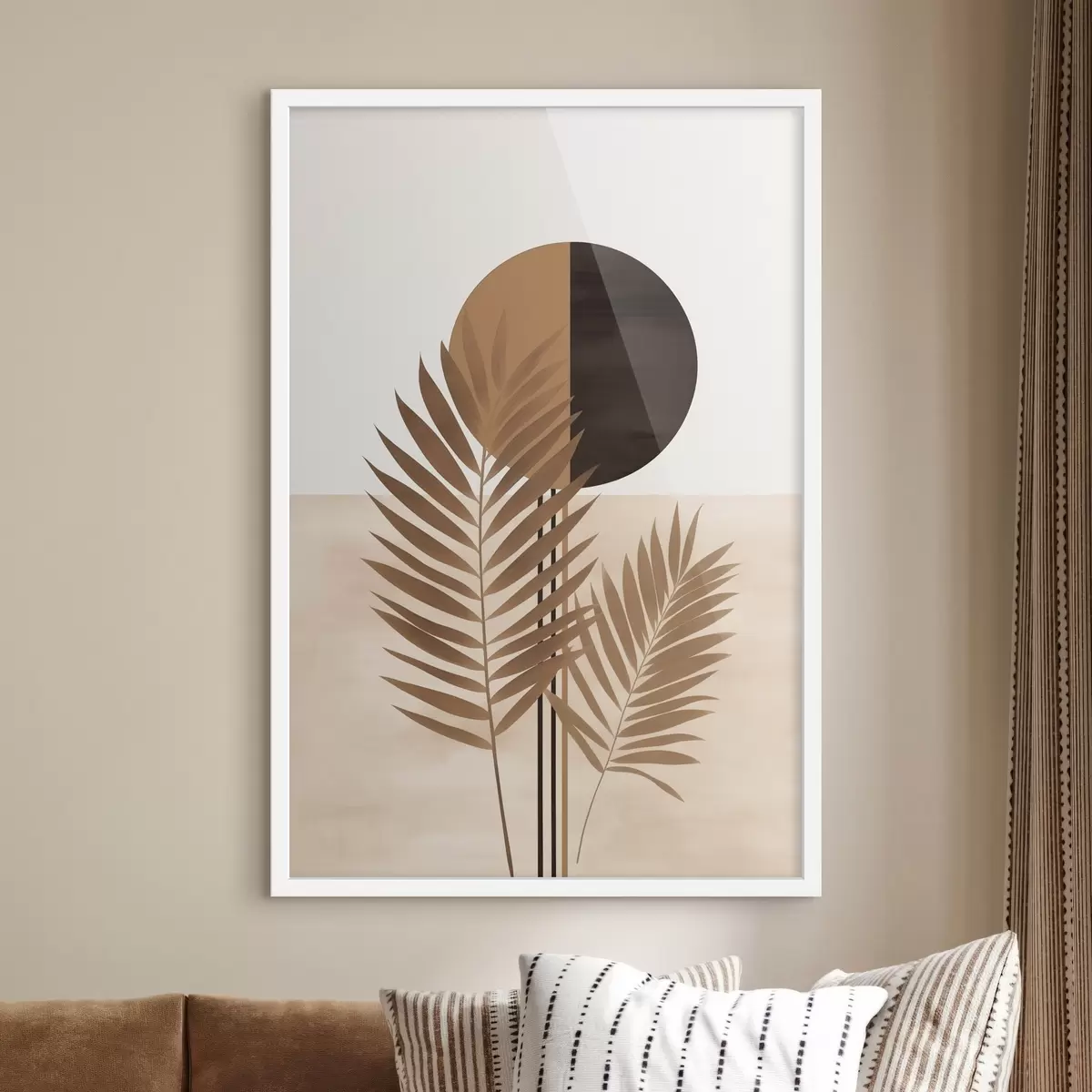 Plakatas Dvi palmių lapų su padalintu apskritimu saulės motyvu f46491