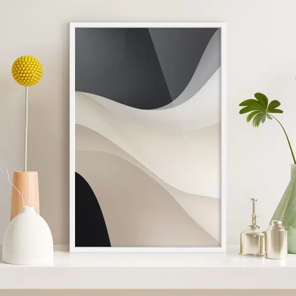 Plakatas Sluoksniuotos tekančios kreivės juodos, kreminės ir pilkos spalvos f46492