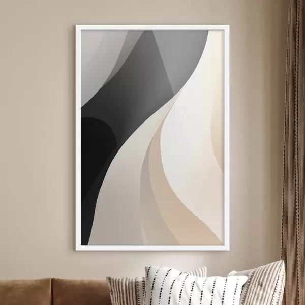 Plakatas Elegantiškos persidengiančios kreivės anglies, dramblio kaulo ir smėlio spalvų f46493