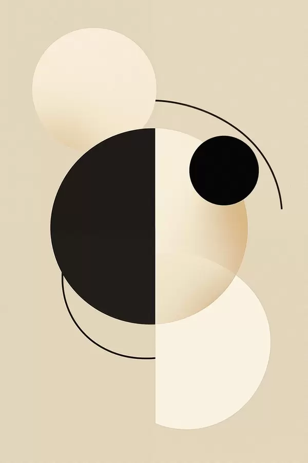 Plakatas Grafiniai apskritimai ir lankai švelnios smėlio spalvos ir juodos spalvos f46497