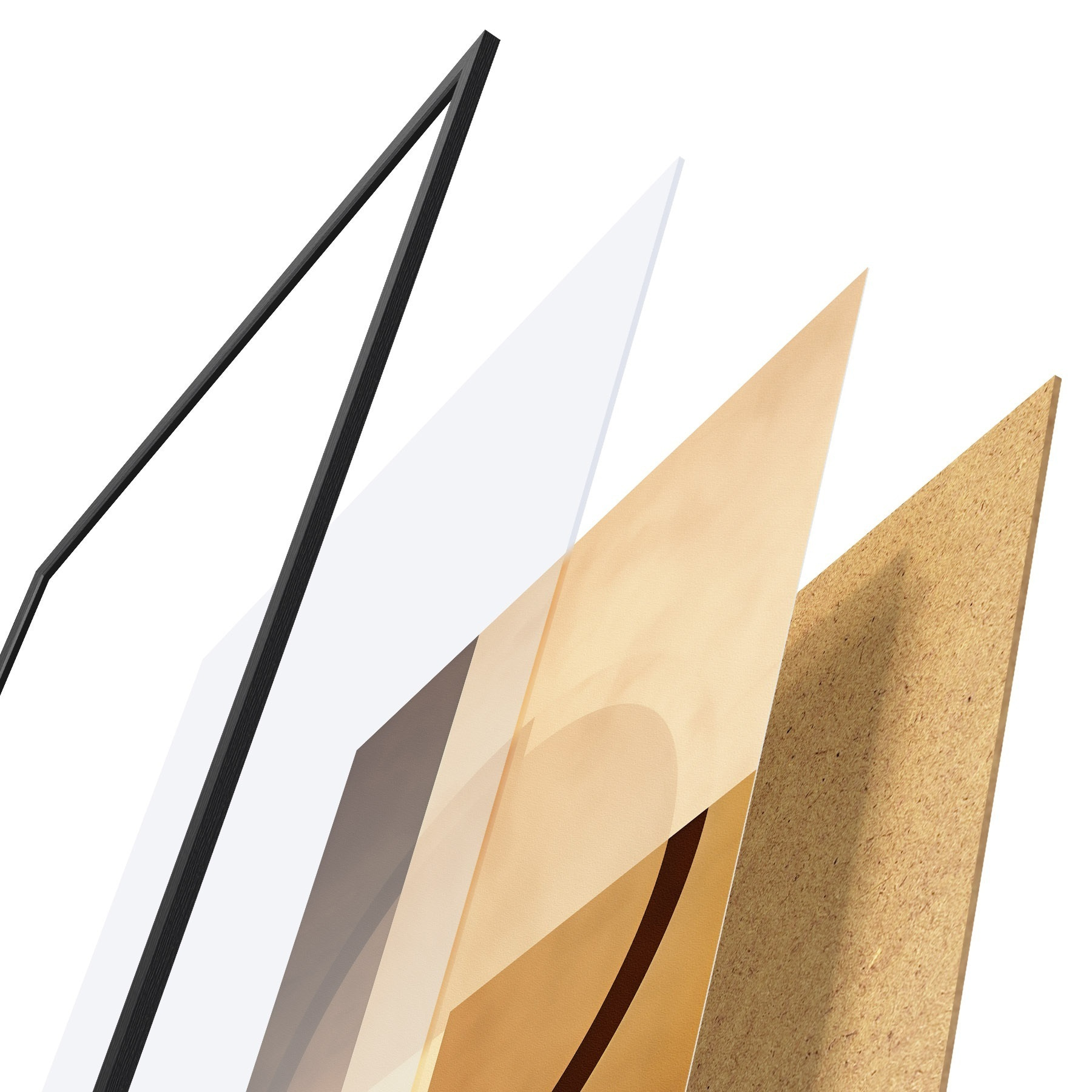 Plakatą sudaro rėmas, pleksiklas, atspausdintas vaizdas ir medžio drožlių plokštės pagrindas. Plakatą galima iš karto pakabinti ant sienos dėl kitoje pusėje esančių laikiklių.
