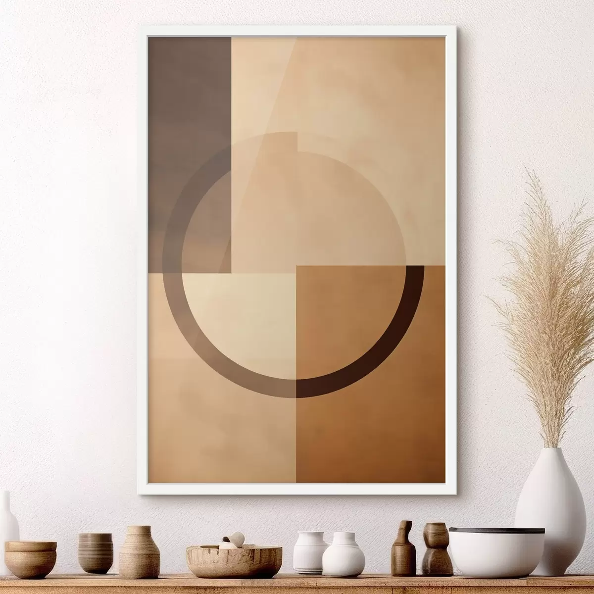 Plakatas Neryškūs kvadratai su permatomu žiedu, šilta žemės spalvų paletė f46498