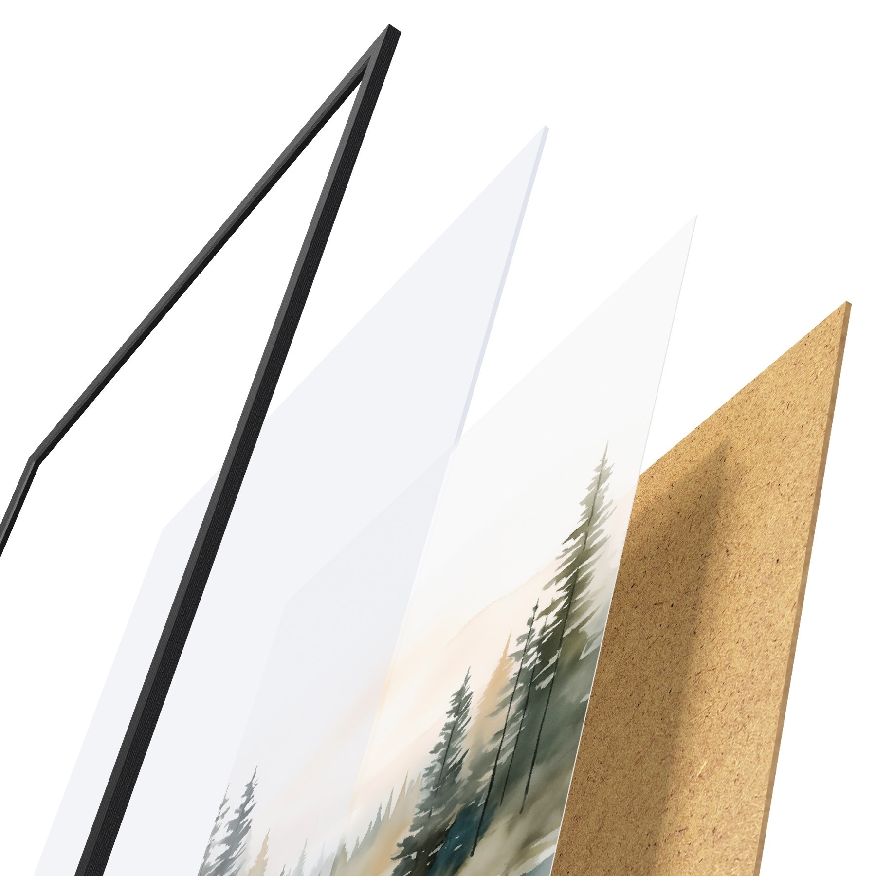 Plakatą sudaro rėmas, pleksiklas, atspausdintas vaizdas ir medžio drožlių plokštės pagrindas. Plakatą galima iš karto pakabinti ant sienos dėl kitoje pusėje esančių laikiklių.