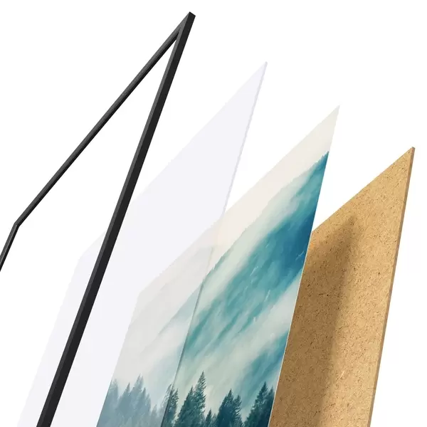 Plakatą sudaro rėmas, pleksiklas, atspausdintas vaizdas ir medžio drožlių plokštės pagrindas. Plakatą galima iš karto pakabinti ant sienos dėl kitoje pusėje esančių laikiklių.