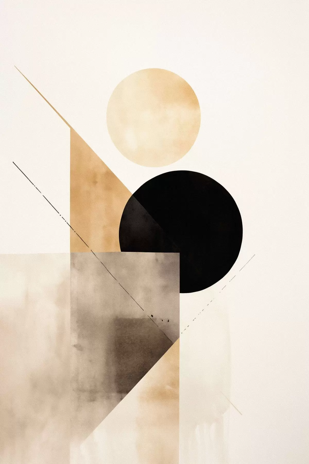 Plakatas Minimalistinė kompozicija: apskritimas, trikampis ir plokštumos f46532