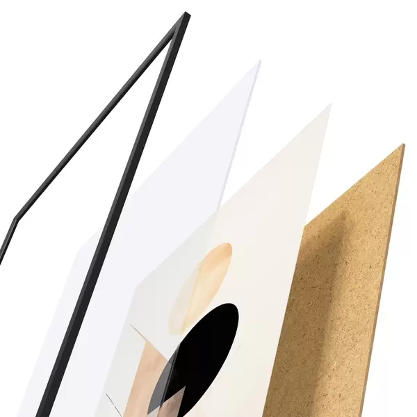 Plakatą sudaro rėmas, pleksiklas, atspausdintas vaizdas ir medžio drožlių plokštės pagrindas. Plakatą galima iš karto pakabinti ant sienos dėl kitoje pusėje esančių laikiklių.