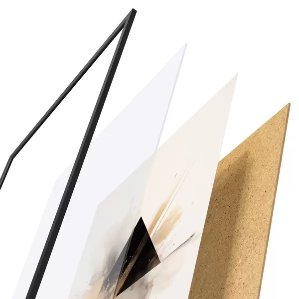Plakatą sudaro rėmas, pleksiklas, atspausdintas vaizdas ir medžio drožlių plokštės pagrindas. Plakatą galima iš karto pakabinti ant sienos dėl kitoje pusėje esančių laikiklių.