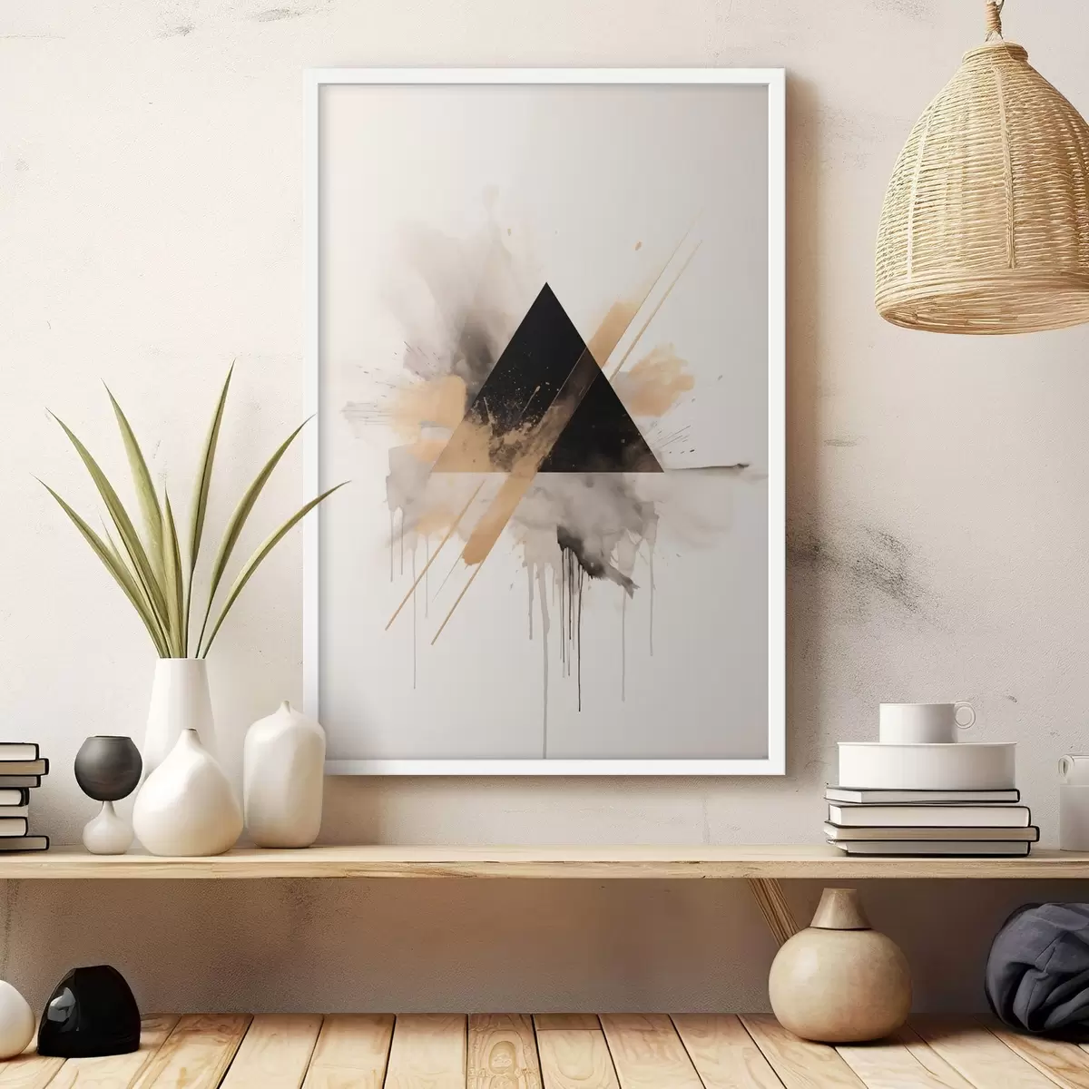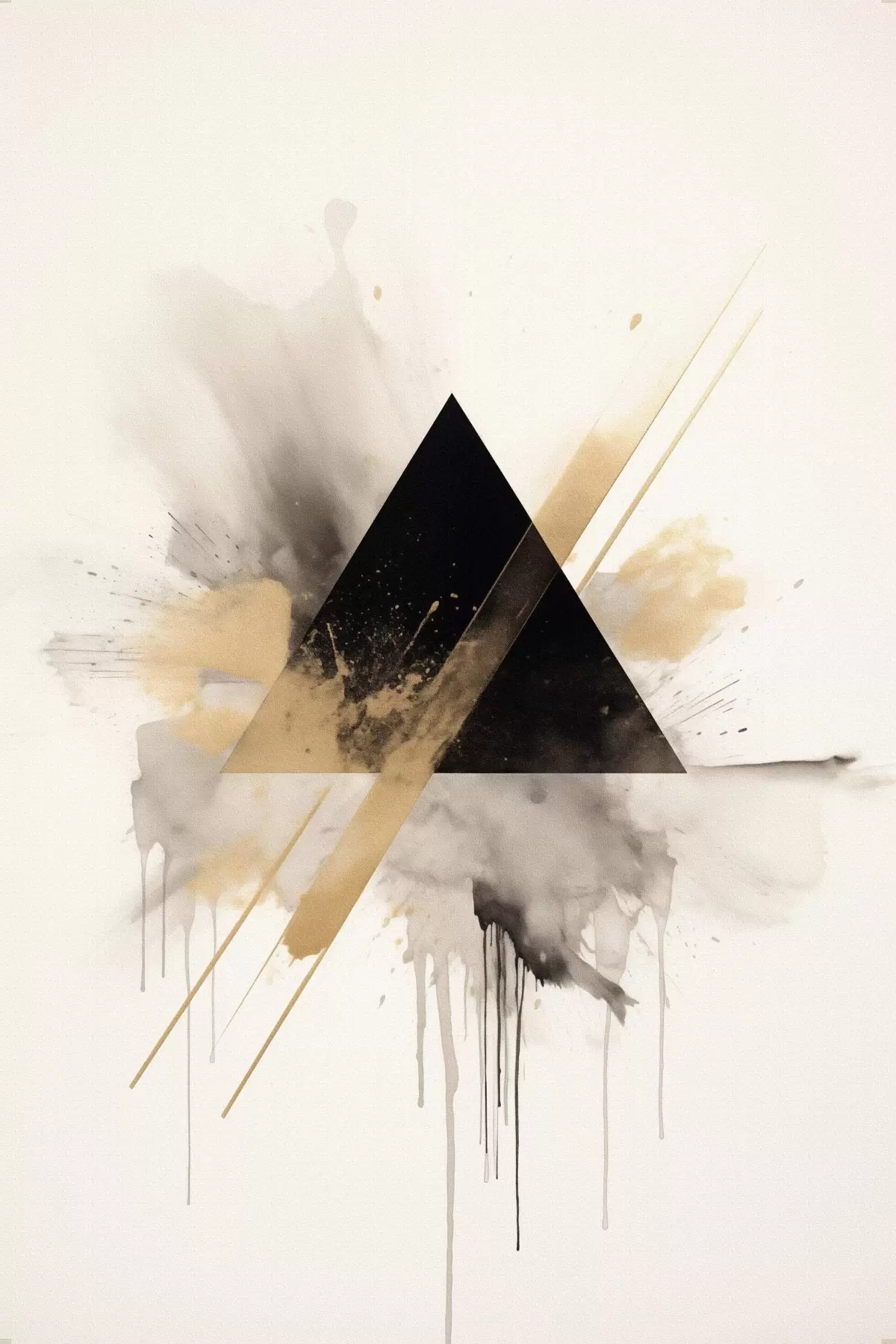 Plakatas Geometrija: juodas trikampis su šviesiais purslais ir linijomis Ne f46540