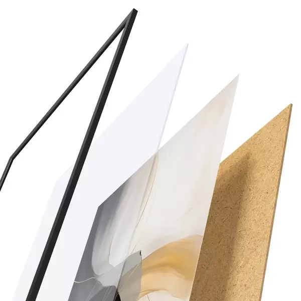 Plakatą sudaro rėmas, pleksiklas, atspausdintas vaizdas ir medžio drožlių plokštės pagrindas. Plakatą galima iš karto pakabinti ant sienos dėl kitoje pusėje esančių laikiklių.
