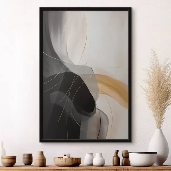 Plakatas Minkštos juodos ir smėlio spalvos linijos su šiltu akcentu f46542