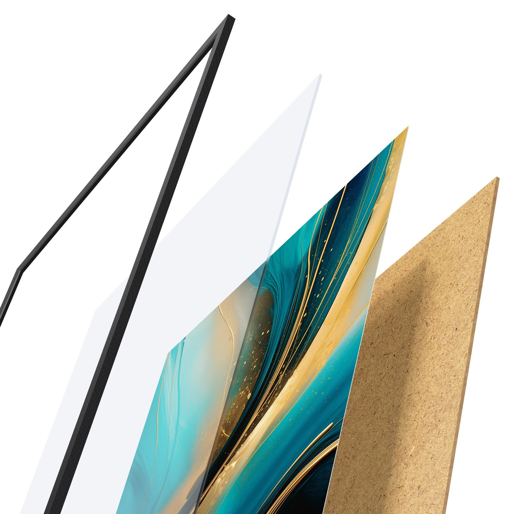 Plakatas Turkio spalvos srautas su plonais ochros spalvos siūlais f46543