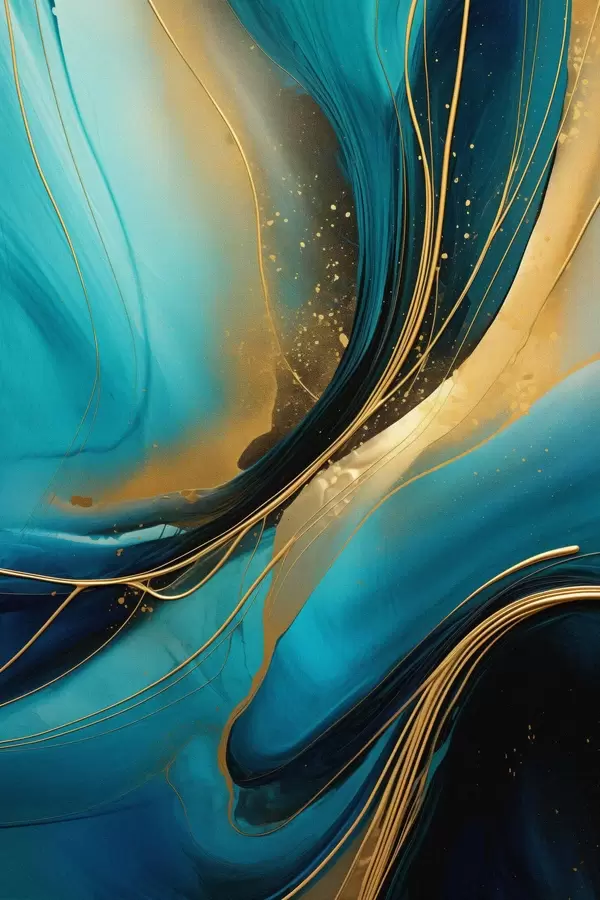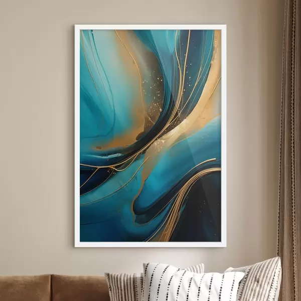 Plakatas Turkio spalvos srautas su plonais ochros spalvos siūlais f46543