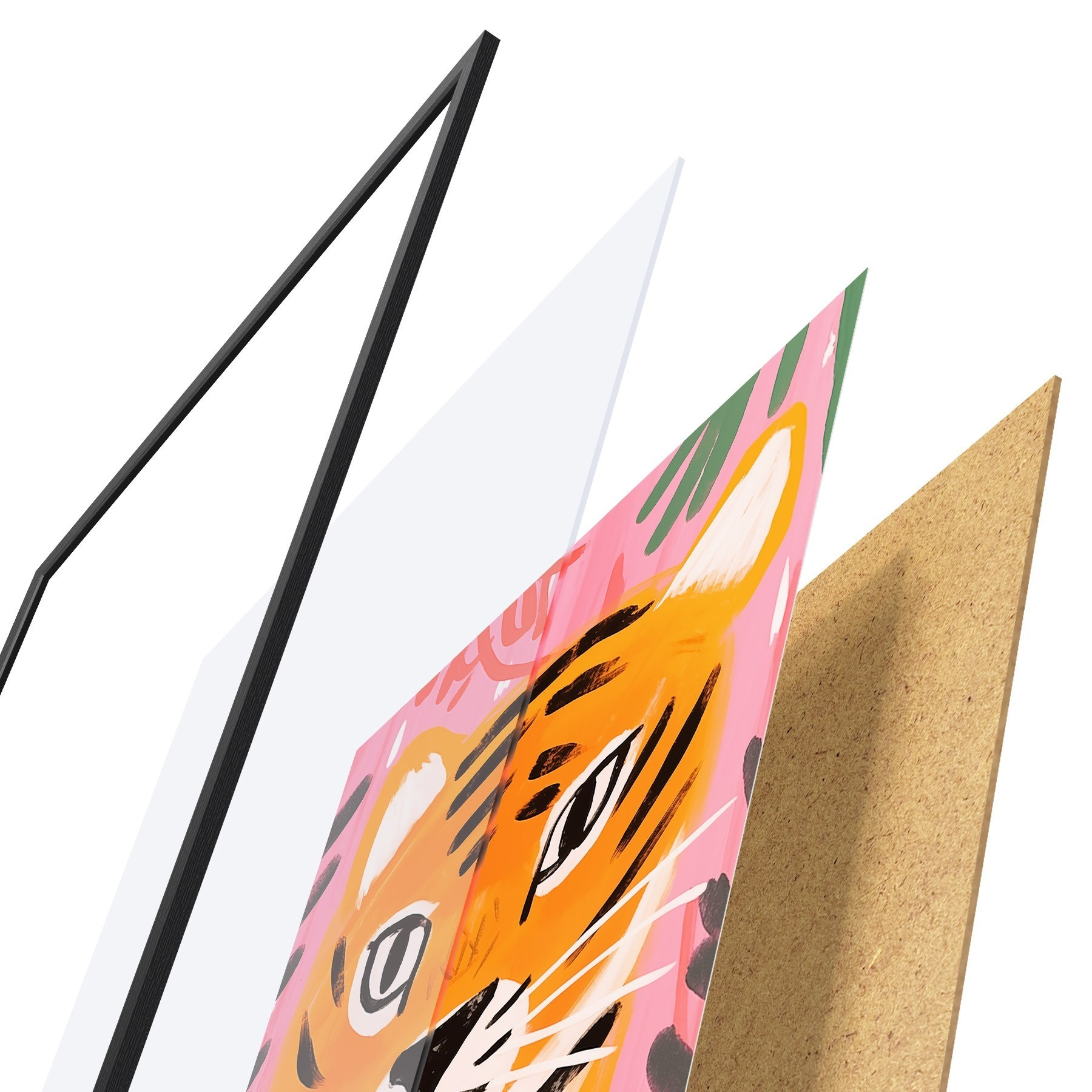Plakatą sudaro rėmas, pleksiklas, atspausdintas vaizdas ir medžio drožlių plokštės pagrindas. Plakatą galima iš karto pakabinti ant sienos dėl kitoje pusėje esančių laikiklių.