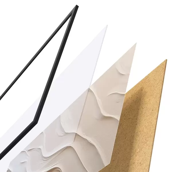Plakatą sudaro rėmas, pleksiklas, atspausdintas vaizdas ir medžio drožlių plokštės pagrindas. Plakatą galima iš karto pakabinti ant sienos dėl kitoje pusėje esančių laikiklių.