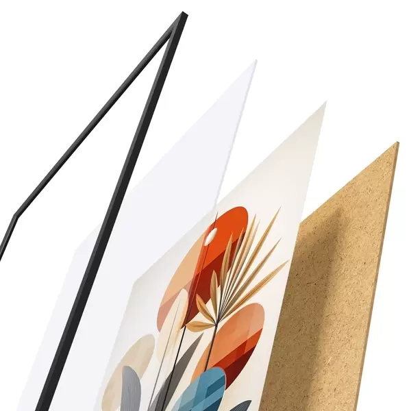 Plakatą sudaro rėmas, pleksiklas, atspausdintas vaizdas ir medžio drožlių plokštės pagrindas. Plakatą galima iš karto pakabinti ant sienos dėl kitoje pusėje esančių laikiklių.