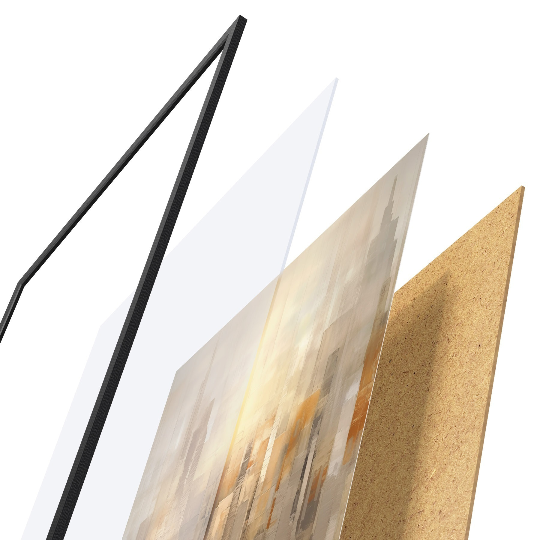 Plakatą sudaro rėmas, pleksiklas, atspausdintas vaizdas ir medžio drožlių plokštės pagrindas. Plakatą galima iš karto pakabinti ant sienos dėl kitoje pusėje esančių laikiklių.