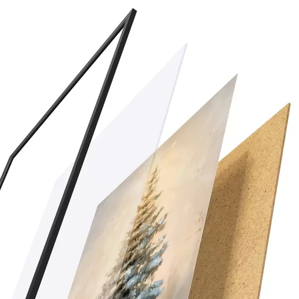 Plakatą sudaro rėmas, pleksiklas, atspausdintas vaizdas ir medžio drožlių plokštės pagrindas. Plakatą galima iš karto pakabinti ant sienos dėl kitoje pusėje esančių laikiklių.