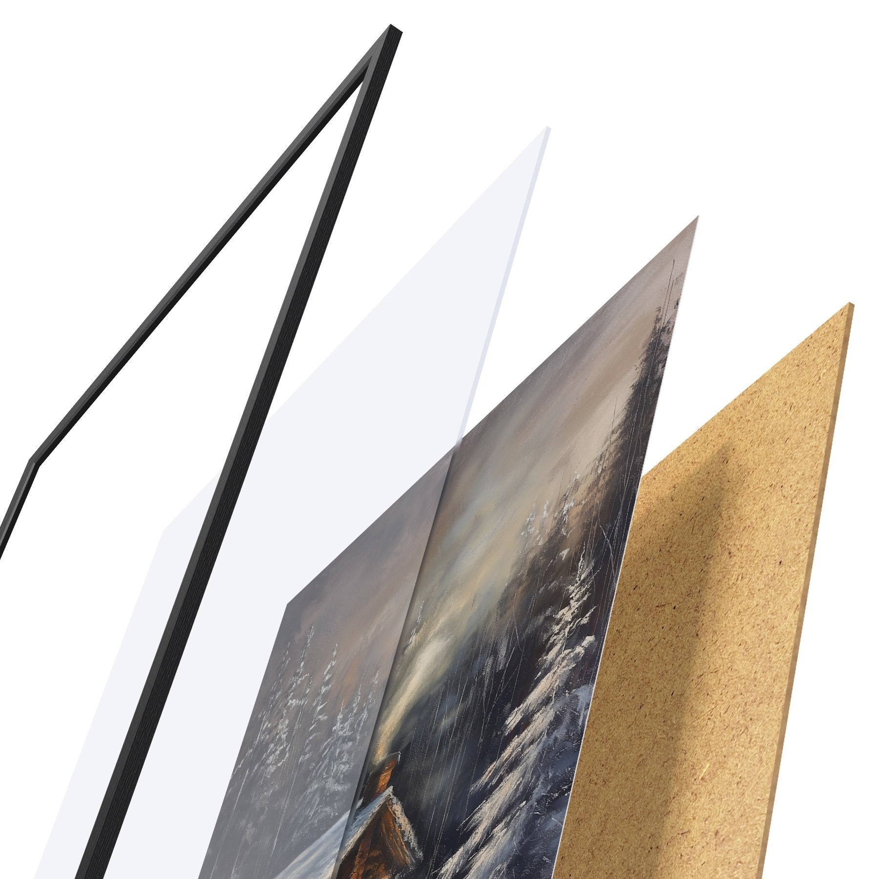 Plakatą sudaro rėmas, pleksiklas, atspausdintas vaizdas ir medžio drožlių plokštės pagrindas. Plakatą galima iš karto pakabinti ant sienos dėl kitoje pusėje esančių laikiklių.