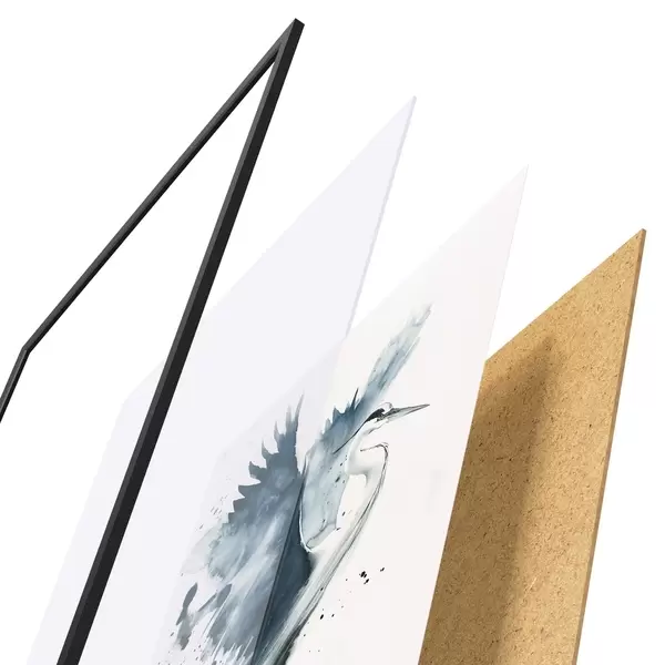 Plakatą sudaro rėmas, pleksiklas, atspausdintas vaizdas ir medžio drožlių plokštės pagrindas. Plakatą galima iš karto pakabinti ant sienos dėl kitoje pusėje esančių laikiklių.