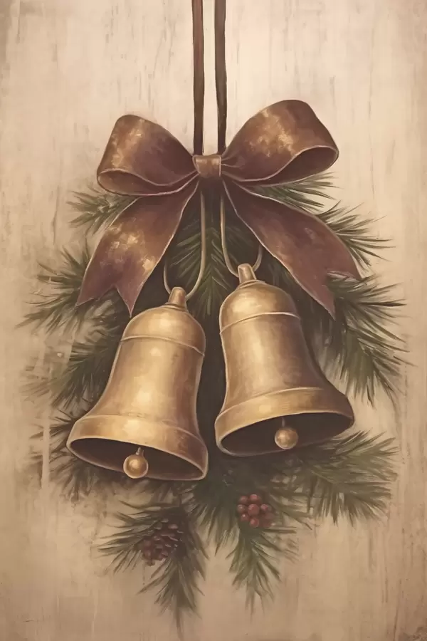 Plakatas Vintage Kalėdų dekoracija su dviem varpeliais ir kaspinu f46626