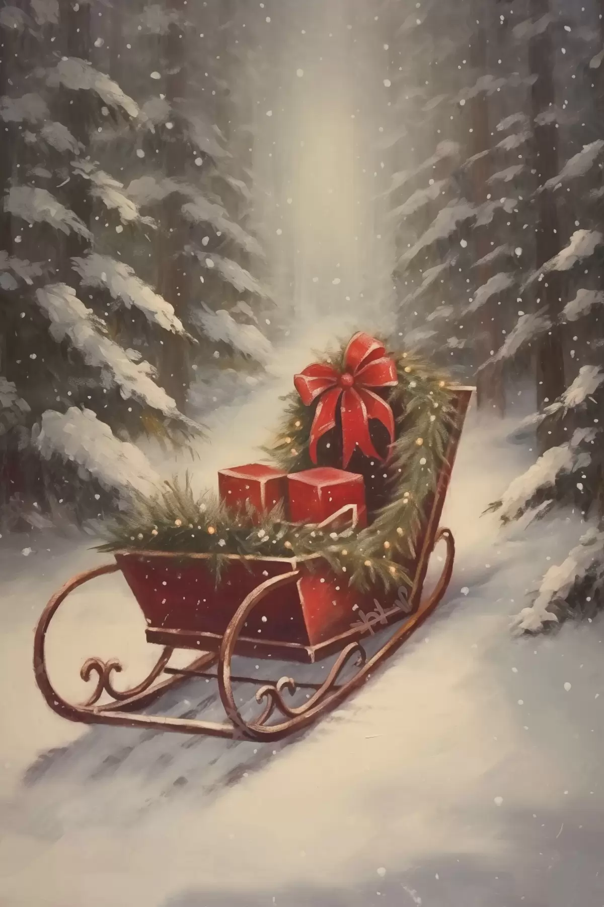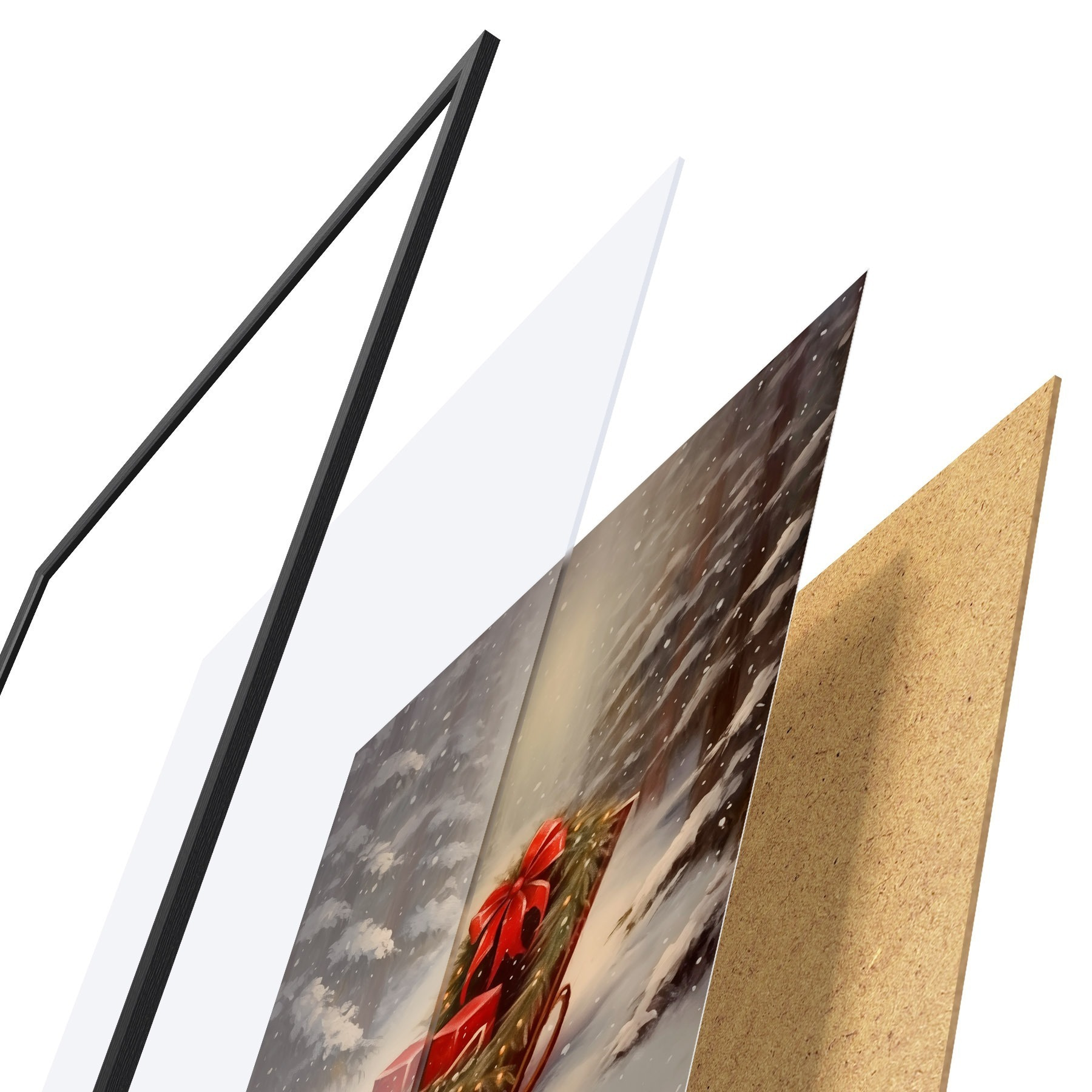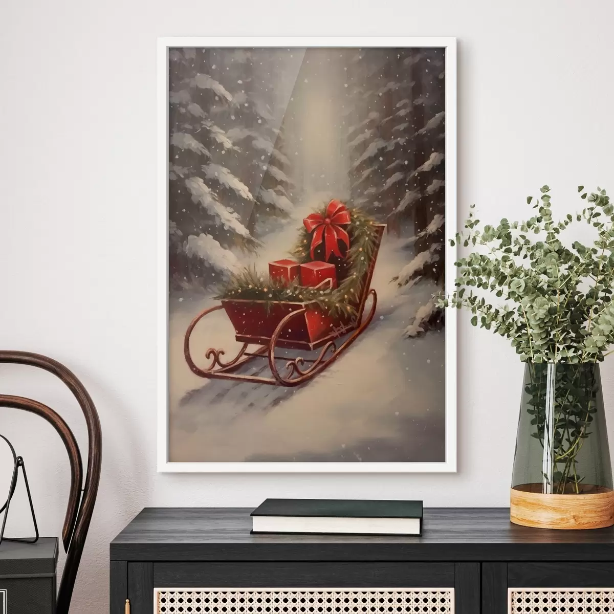 Plakatas Kalėdų rogės su dovanomis snieguotame miške f46630