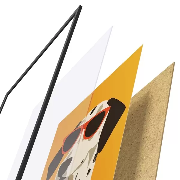 Plakatą sudaro rėmas, pleksiklas, atspausdintas vaizdas ir medžio drožlių plokštės pagrindas. Plakatą galima iš karto pakabinti ant sienos dėl kitoje pusėje esančių laikiklių.