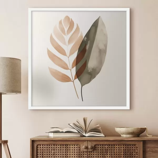 Plakatas Du lapų siluetai akvarelės abstrakčiojo stiliaus paveiksle f46645