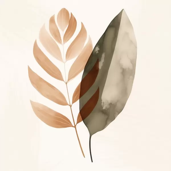 Plakatas Du lapų siluetai akvarelės abstrakčiojo stiliaus paveiksle f46645