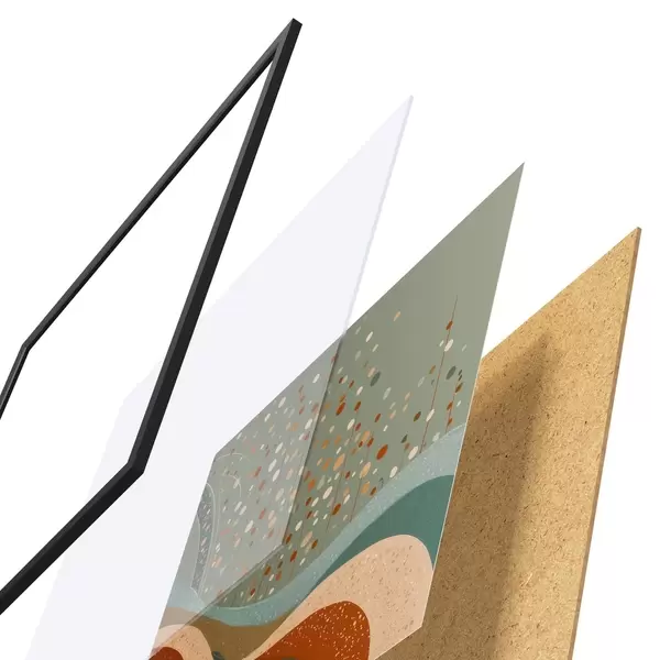 Plakatą sudaro rėmas, pleksiklas, atspausdintas vaizdas ir medžio drožlių plokštės pagrindas. Plakatą galima iš karto pakabinti ant sienos dėl kitoje pusėje esančių laikiklių.
