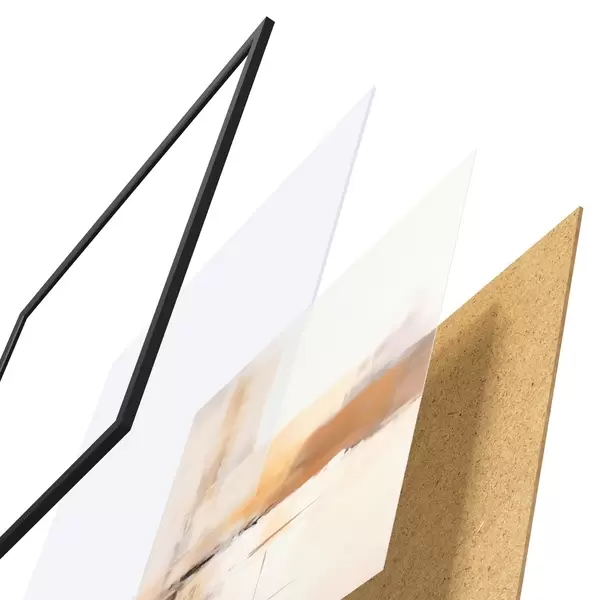 Plakatą sudaro rėmas, pleksiklas, atspausdintas vaizdas ir medžio drožlių plokštės pagrindas. Plakatą galima iš karto pakabinti ant sienos dėl kitoje pusėje esančių laikiklių.