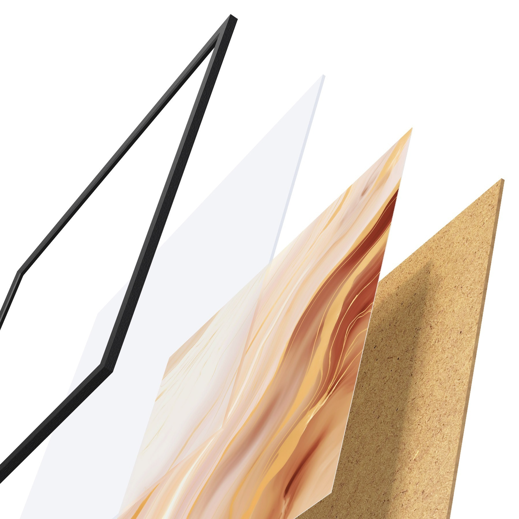Plakatą sudaro rėmas, pleksiklas, atspausdintas vaizdas ir medžio drožlių plokštės pagrindas. Plakatą galima iš karto pakabinti ant sienos dėl kitoje pusėje esančių laikiklių.