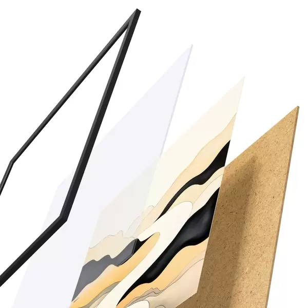 Plakatą sudaro rėmas, pleksiklas, atspausdintas vaizdas ir medžio drožlių plokštės pagrindas. Plakatą galima iš karto pakabinti ant sienos dėl kitoje pusėje esančių laikiklių.