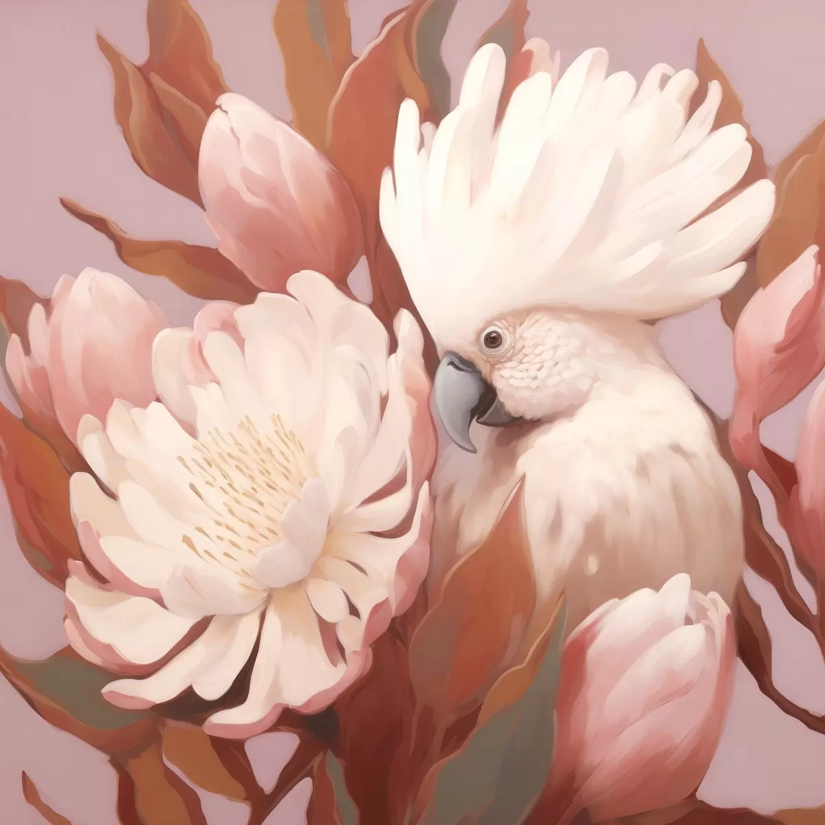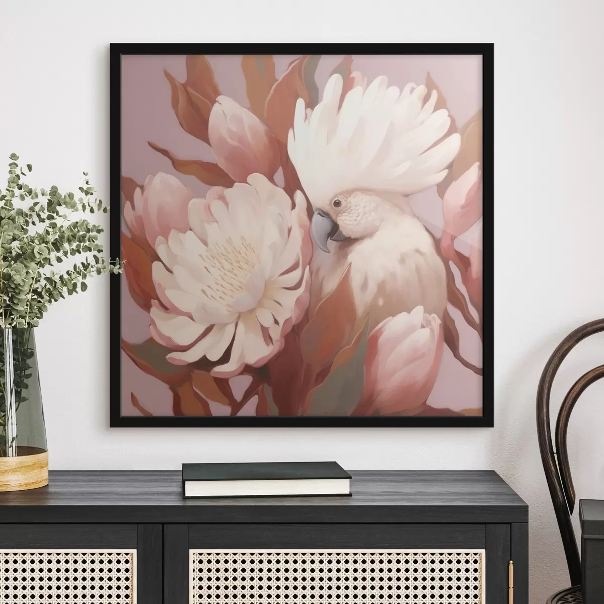 Plakatas Abstraktus meninis paukštis gėlių kompozicijoje Ne f46667