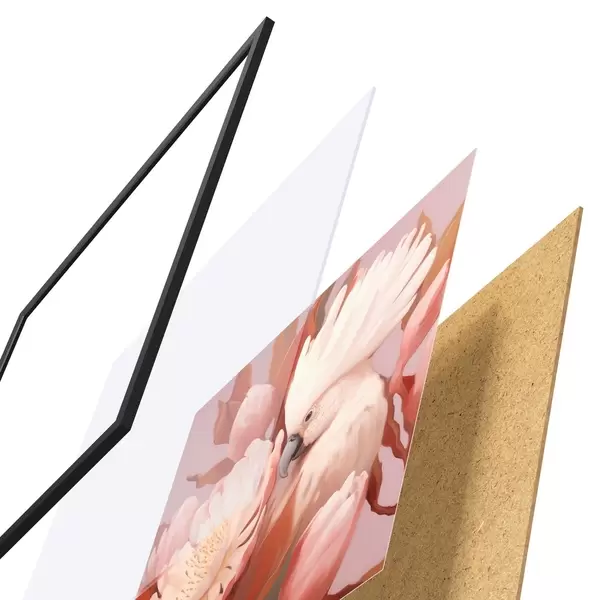 Plakatą sudaro rėmas, pleksiklas, atspausdintas vaizdas ir medžio drožlių plokštės pagrindas. Plakatą galima iš karto pakabinti ant sienos dėl kitoje pusėje esančių laikiklių.