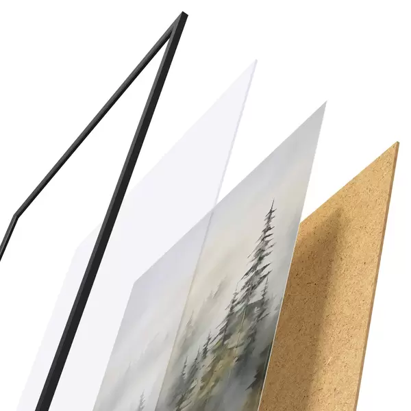 Plakatą sudaro rėmas, pleksiklas, atspausdintas vaizdas ir medžio drožlių plokštės pagrindas. Plakatą galima iš karto pakabinti ant sienos dėl kitoje pusėje esančių laikiklių.
