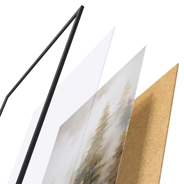 Plakatą sudaro rėmas, pleksiklas, atspausdintas vaizdas ir medžio drožlių plokštės pagrindas. Plakatą galima iš karto pakabinti ant sienos dėl kitoje pusėje esančių laikiklių.