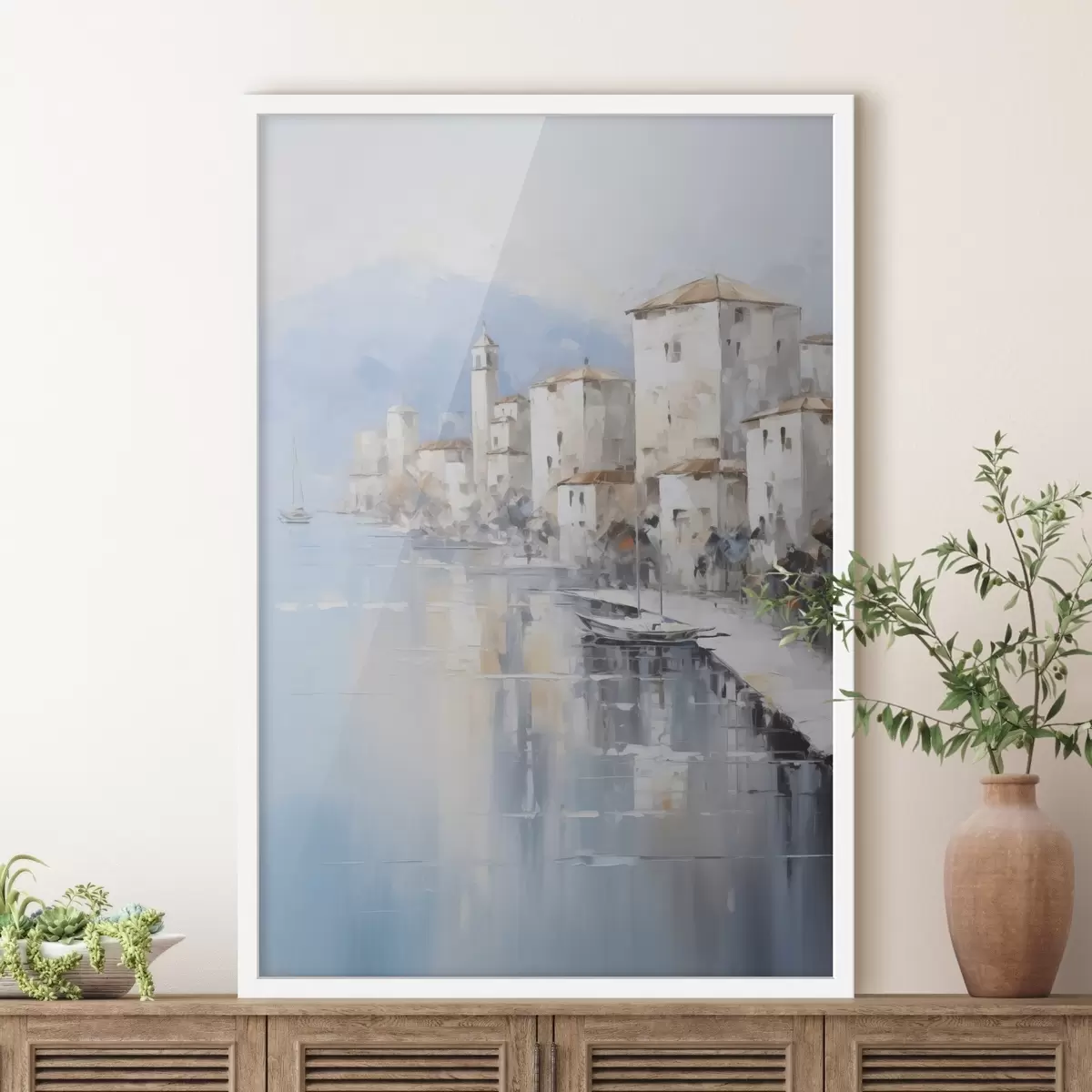 Plakatas Abstrakčios namai prie įlankos tapybos imitacija Ne f46673