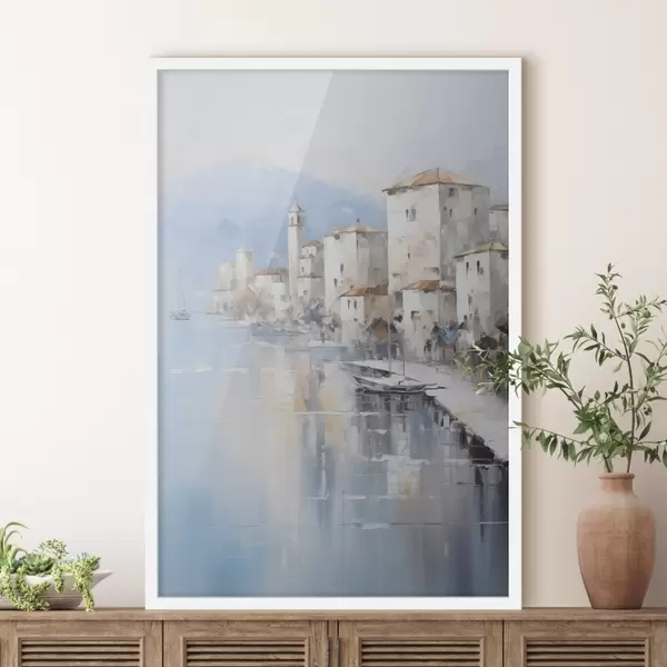 Plakatas Abstrakčios namai prie įlankos tapybos imitacija f46673