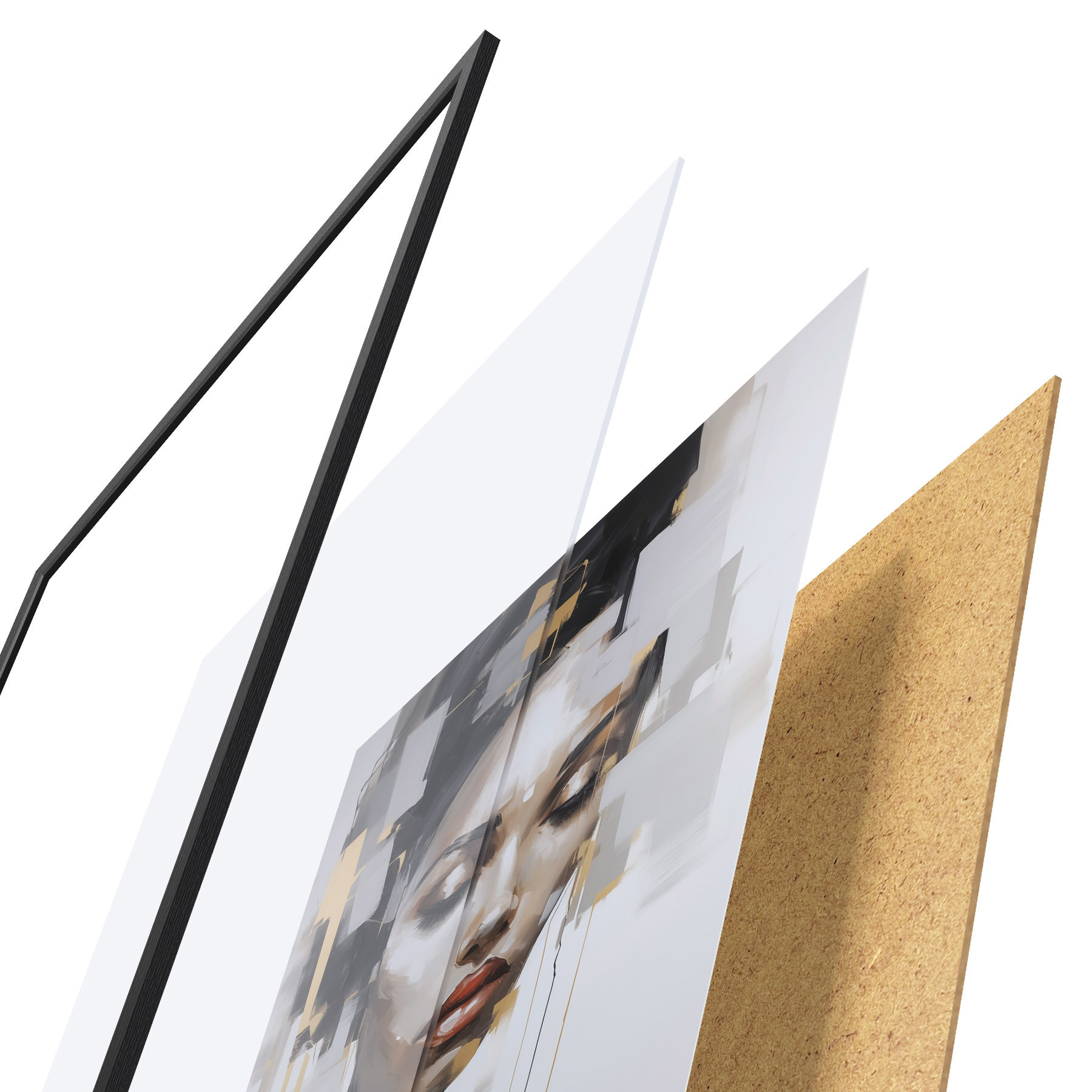 Plakatą sudaro rėmas, pleksiklas, atspausdintas vaizdas ir medžio drožlių plokštės pagrindas. Plakatą galima iš karto pakabinti ant sienos dėl kitoje pusėje esančių laikiklių.