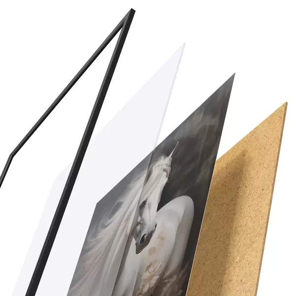 Plakatą sudaro rėmas, pleksiklas, atspausdintas vaizdas ir medžio drožlių plokštės pagrindas. Plakatą galima iš karto pakabinti ant sienos dėl kitoje pusėje esančių laikiklių.