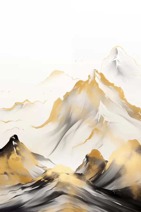 Plakatas Tekstūruotos geltonos ir juodos kalvos su snieguotomis viršūnėmis, tapybos stilius „ink wash“, minimalistinis kalnų masyvas f46683