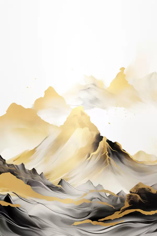 Plakatas Tekstūruotos geltonos ir juodos kalvos su snieguotomis viršūnėmis, tapybos stilius „ink wash“, minimalistinis kalnų masyvas Ne f46684