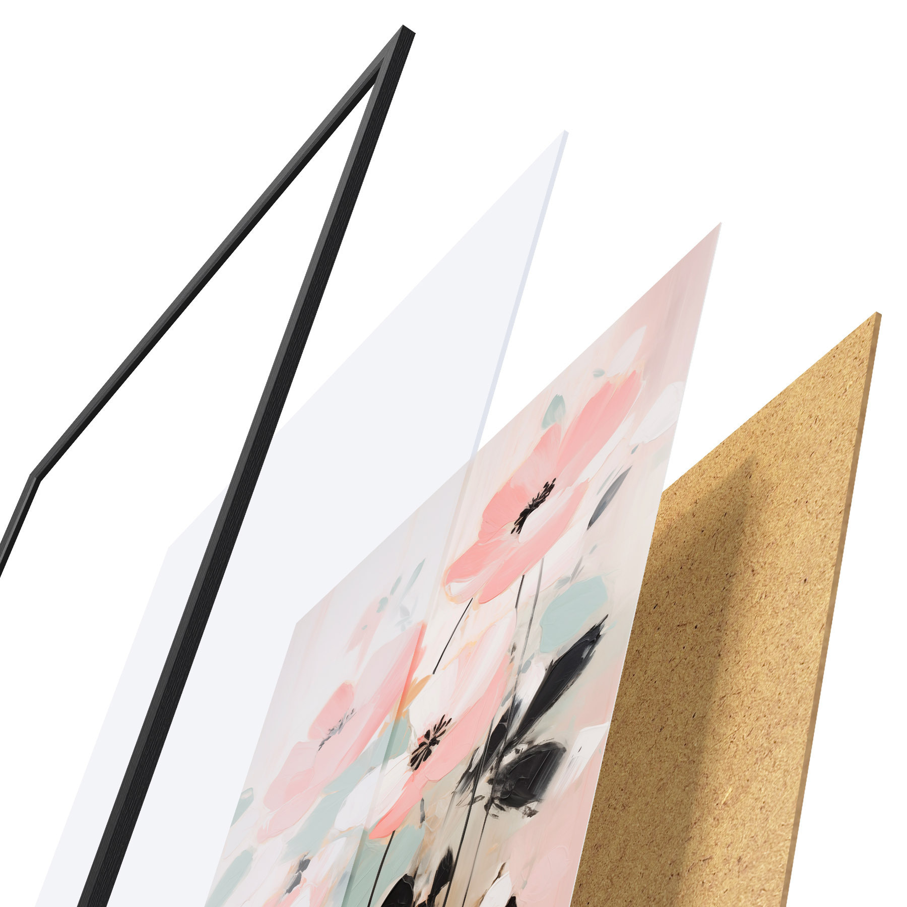 Plakatą sudaro rėmas, pleksiklas, atspausdintas vaizdas ir medžio drožlių plokštės pagrindas. Plakatą galima iš karto pakabinti ant sienos dėl kitoje pusėje esančių laikiklių.