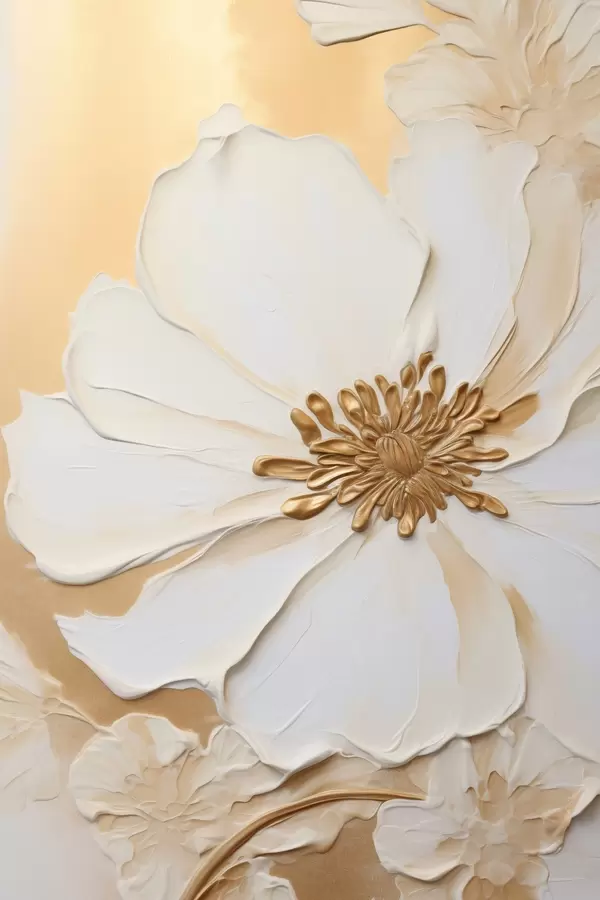 Plakatas Balta gėlė su subtiliais žiedlapiais, imituojamais storais potėpiais, ant šviesiai oranžinio tekstūruoto fono. Ne f46691