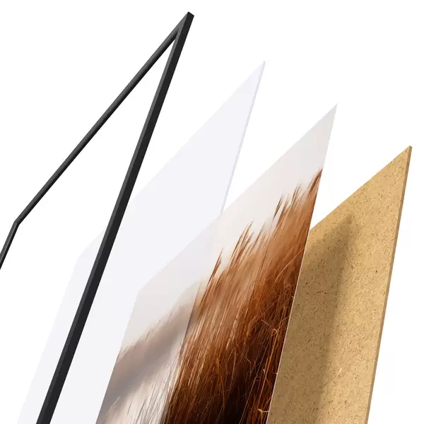 Plakatą sudaro rėmas, pleksiklas, atspausdintas vaizdas ir medžio drožlių plokštės pagrindas. Plakatą galima iš karto pakabinti ant sienos dėl kitoje pusėje esančių laikiklių.