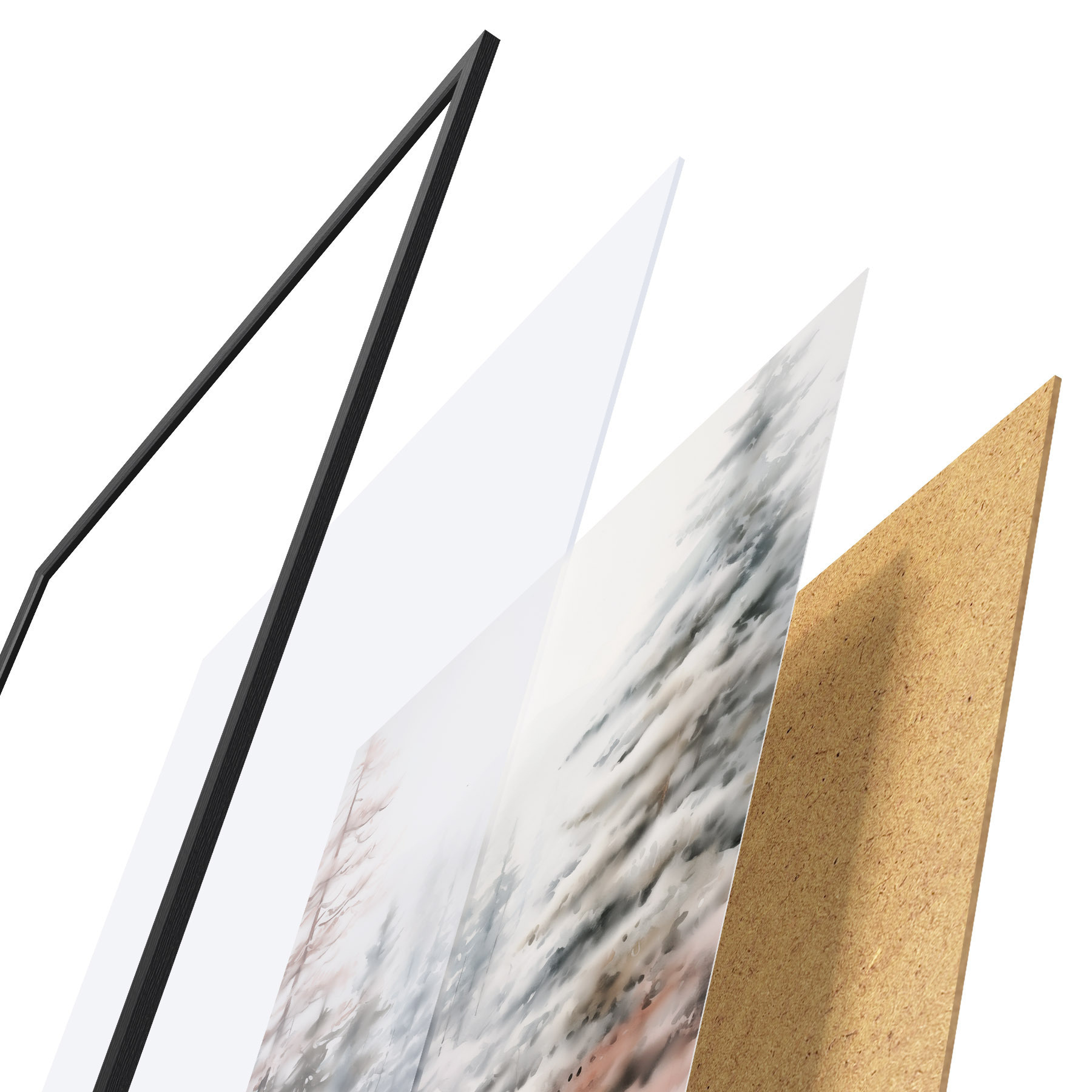 Plakatą sudaro rėmas, pleksiklas, atspausdintas vaizdas ir medžio drožlių plokštės pagrindas. Plakatą galima iš karto pakabinti ant sienos dėl kitoje pusėje esančių laikiklių.