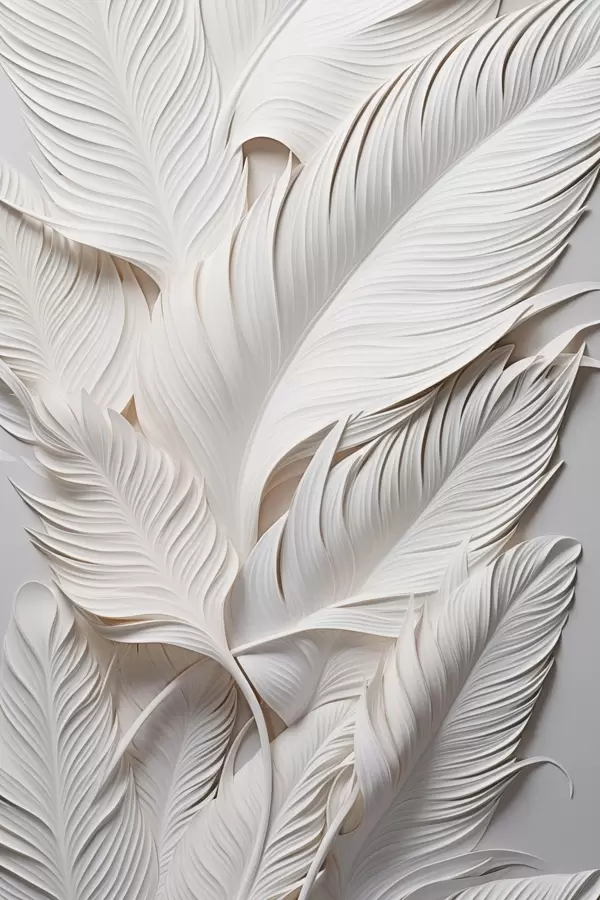 Plakatas Balta lapai su sudėtingais detalėmis, sukuriančiais tekstūrą ir sluoksniuotą efektą, minimalistinis menas Ne f46706