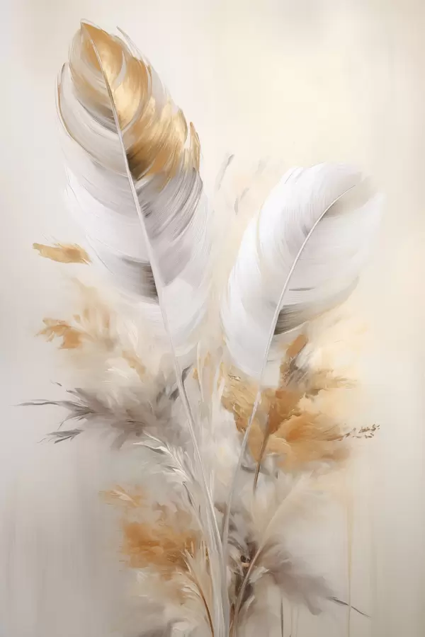 Plakatas Abstrakčios plunksnos, apsuptos smėlio ir rudos spalvos plunksnų, švelnios ir subtilios, ant šviesiai smėlio spalvos fono. Ne f46711