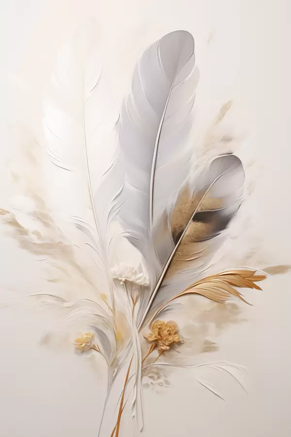 Plakatas Abstrakčios plunksnos, apsuptos smėlio ir rudos spalvos plunksnų, švelnios ir subtilios, ant šviesiai smėlio spalvos fono. Ne f46712
