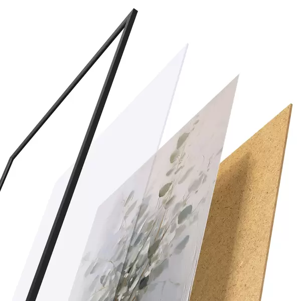 Plakatą sudaro rėmas, pleksiklas, atspausdintas vaizdas ir medžio drožlių plokštės pagrindas. Plakatą galima iš karto pakabinti ant sienos dėl kitoje pusėje esančių laikiklių.